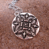 25mm round charm pendant on stainless steel chain with stainless jump rings and lobster claw clasp. Chain is 18 inches long and the pendant gives it another inch in length.