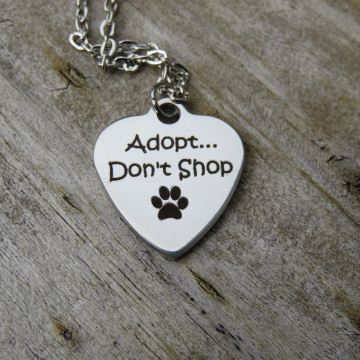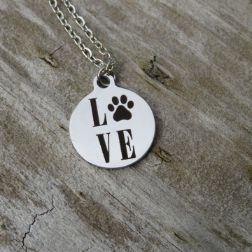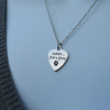 3/4 inch stainless steel etched charm. Stainless steel chain is 16 inches long. Stainless steel lobster claw clasp.