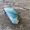 Gorgeous freeform genuine dyed agate on stainless steel chain can be worn with either side facing out. Hangs about 23 inches long. You will receive the exact necklace shown in this listing.