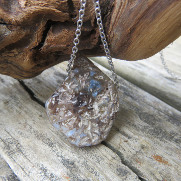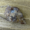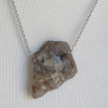 These agate slice necklaces are one of a kind. Gorgeous natural textures, striations and imperfections. This one has a highly textured side and a smooth side with a machine line.