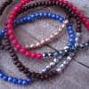 Stretch bracelet. I make them 7 inches to fit average wrists. Perfect for stacking! these have small 4mm wood rondelles or 4mm glass beads along with a section of 4mm faceted glass crystal beads.