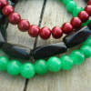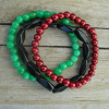 I'm calling this the holiday trio because it's red and green and black.. the traditional colors of Christmas time! You get all three! Elastic stretch, 7 inches of beads. Fits an average wrist.