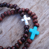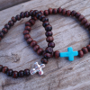5mm natural wood rondelle beads with your choice of a Chalk Turquoise cross charm or a Silver Tone charm. You will receive ONE. These are stretch floss bracelets and fit an average wrist. I make them about 7 inches long. Natural variations will occur in the wood and turquoise.