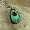 This is natural wood that has been decoupaged with interesting designs. This necklace is a thicker 18 inch long stainless steel chain with lobster claw clasp. All components are stainless steel. The wood piece and jumprings add an additional 1.5 inches to the length. The color in this a green turquoise.