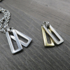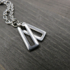 This chain is 16 inches with a 2 inch beveled double drop. Your choice of all steel or one steel and one goldtone steel. The two tone version can be worn with either side facing out.
