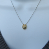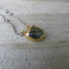 Genuine Labradorite is rimmed in 22k gold electroplate and placed on a dainty but strong stainless steel chain with lobster claw clasp. I love the two tone on this so you can wear it with everything. It makes a great layering piece. 1/2 x 1/2 inch.