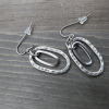 1 inch half inch x hammered ovals are combined with a smooth oval component. All stainless steel components, jumprings and earwires. Includes rubber stoppers even if they are not shown in the photo. These hang 1.25 inches long.