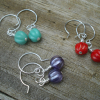 6mm glass melon beads are placed on silver tone round ear wires. These hang 3/4 of an inch long. Great spring/summer design that are fun to wear!