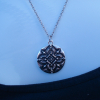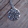 25mm round charm pendant on stainless steel chain with stainless jump rings and lobster claw clasp. Chain is 18 inches long and the pendant gives it another inch in length.