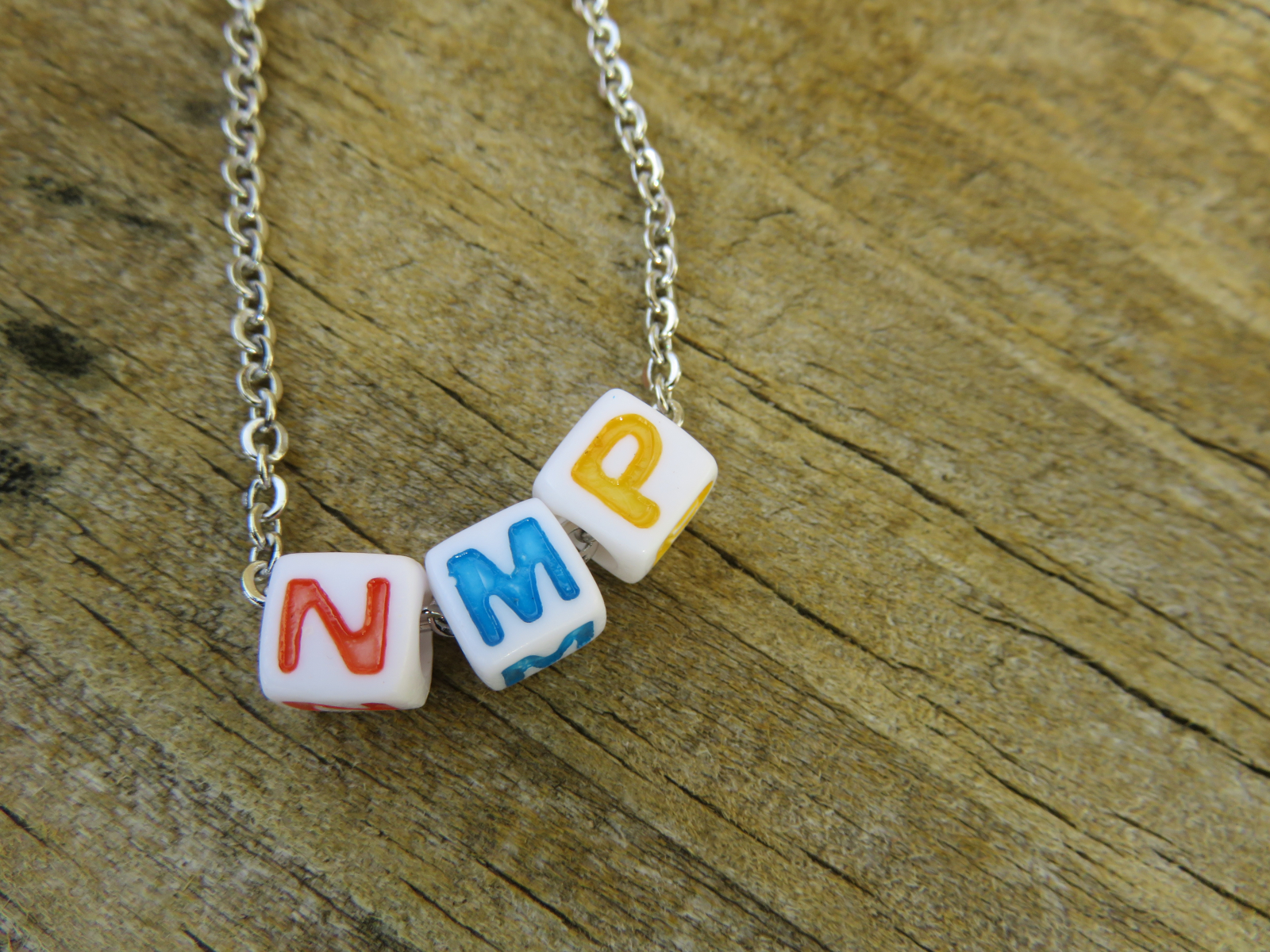 16 inch stainless steel chain with lobster claw clasp. Acrylic blocks. Optional extender available if you need it longer. Colors on blocks will vary. FREE SHIPPING!
