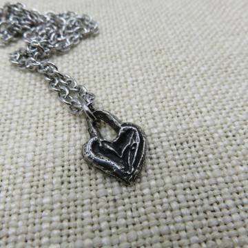 Stainless steel chain, jumprings and lobser claw calsp with an open Inviciti pewter heart pendant
