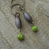 10 mm brass fluted pod beads with cute 5mm melon glass bead drops. These hang an inch and 1/4 long. Rounded brass ear wires are super comfy!