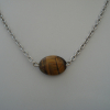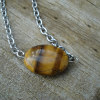 16mm x 12 mm genuine Tiger Eye flat oval gemstone. Stainless steel chain with steel wire, jump rings and lobster claw clasp. 16 inches long. great layering piece!