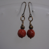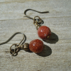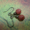8mm faceted goldstone beads topped with fluted brass beads. Brass ear wires, headpins and jump rings. Hangs 3/4 inch long.