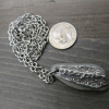 One of a kind river rock from Montana is topped with a hand cast pewter piece from Inviciti. Rock measures 1.25 inches x .50 inch.