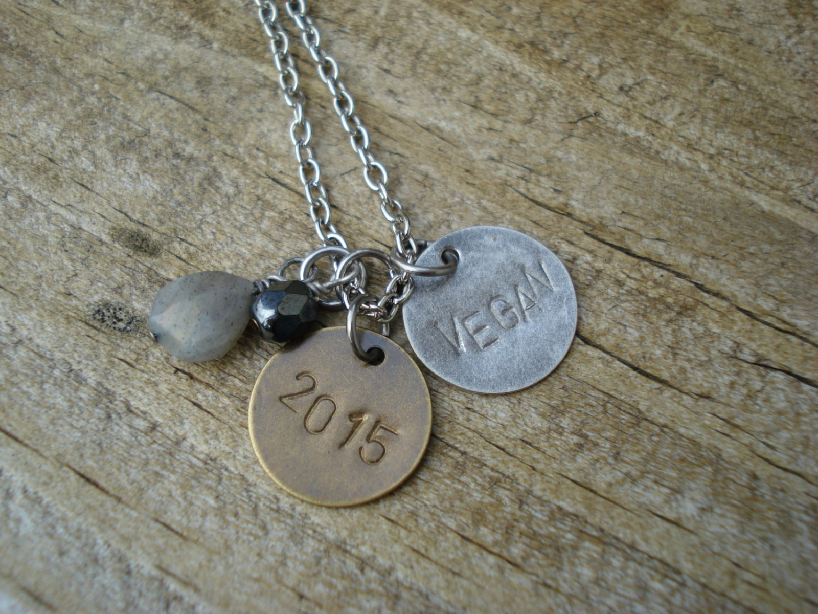(1) 15mm silvertoned disk with VEGAN handstamped on it