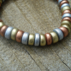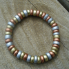 These 7mm wide wooden discs remind me of those candy bracelets! This is a stretch bracelet and will fit up to a 7.5 inch wrist comfortably without being tight.