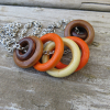 This necklace takes me back to the 70's! Real wooden rings in shades of light brown, dark brown, orange and cream float freely on a stainless steel chain with lobster clasp.This necklaces hangs about 30 inches including the rings. Coordinating earrings available in another listing.