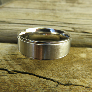 Brushed Finish and Polished Edge Stainless Steel Band Ring