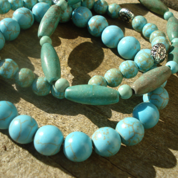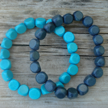 Wood Bracelet Duo (turquoise & blue-grey)