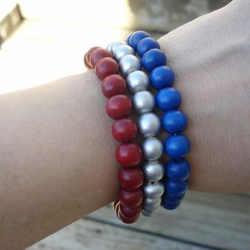Wood Bracelet Duo (red, silver, blue)