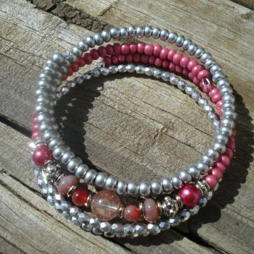 Wood Bracelet Trio (red brown, natural and aubergine)