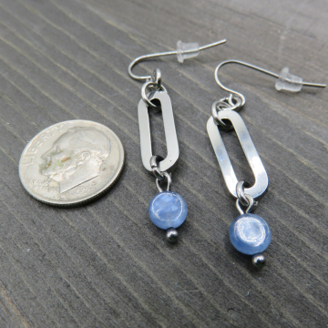 Oblong Rectangle With Kyanite Coins Earrings