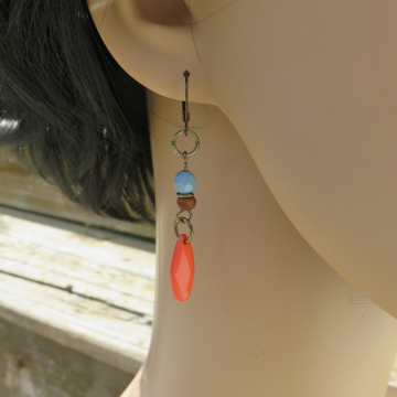 Wooden Ring Earrings - Orange